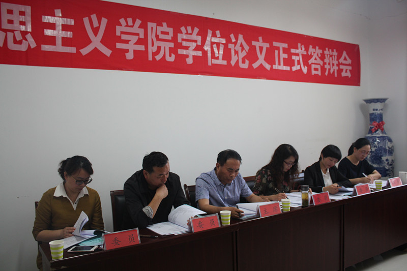 2015级学术型硕士研究生邀请到郑州大学于向东教授担任答辩主席,时明德、唐国战、门献敏、程晋富等教授担任第一组答辩委员,杨云善、蔡宇宏、徐永新、厉有国等教授担任第二组答辩委员。2016级学科教学(思想政治教育)专业学位研究生邀请到山东理工大学孙民教授担任答辩主席,浉河中学魏立荣老师(校外导师)、李春生教授、李蕊副教授、张冉副教授担任第一组答辩委员,信阳高中黄诚老师(校外导师)、周智、丁静、黄玲丽等副教授担任第二组答辩委员。第五组答辩会由法学与社会学学院院长李文发教授担任答辩主席,羊山中学陈勇老师(校外导师)、周智副教授、黄玲丽副教授担任答辩委员。