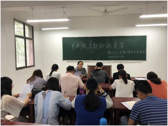 2018年5月11日上午,在教五201教室,永利集团官网研究生党支部开展了十九大报告主题知识竞答活动,支部书记卢云晓、部分党员和入党积极分子参加了活动,支部副书记魏中龑主持活动。