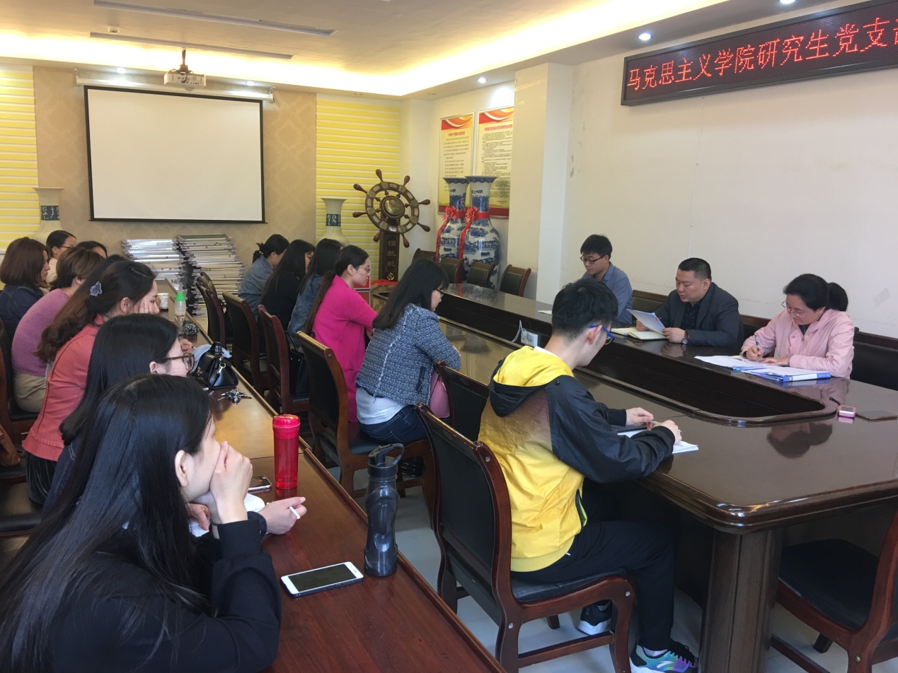 2017年11月23日下午,永利集团官网研究生党支部在社科楼开展“肩负使命,砥砺前行”为主题的十九大学习活动,出席活动的有永利集团官网党委副书记何晓坚、党支部书记卢云晓及全体研究生。