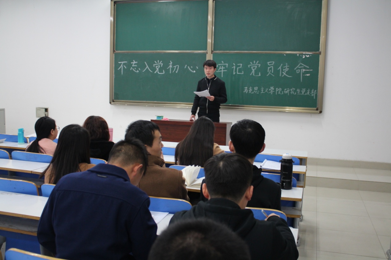 2017年11月14日下午,永利集团官网研究生党支部在社科楼325教室举行了主题为“不忘入党初心,牢记党员使命”的十九大报告学习活动。活动由支部副书记魏中龑主持,全体成员参加了活动。