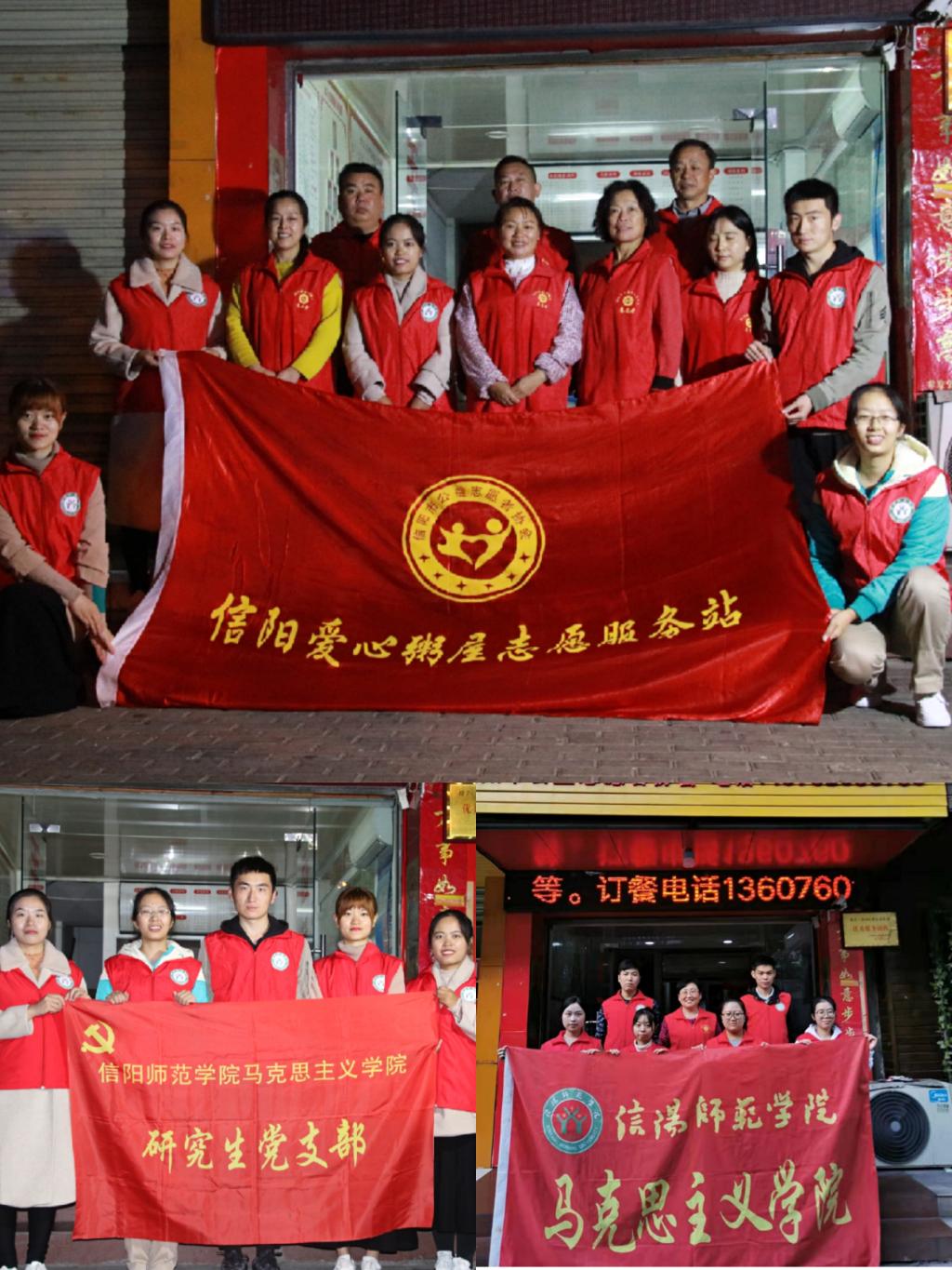 按照“不忘初心,牢记使命”主题教育精神要求,结合我支部的工作安排,本着大力弘扬“奉献、友爱、互助、进步”的志愿者服务精神,发挥党员同志的先锋模范作用,进一步密切党群关系,2019年10月31日永利集团官网研究生党支部部分党员和入党积极分子组成志愿服务小队,来到信阳市申碑路浉河区“爱心粥屋”,为环卫工人备餐献爱心。