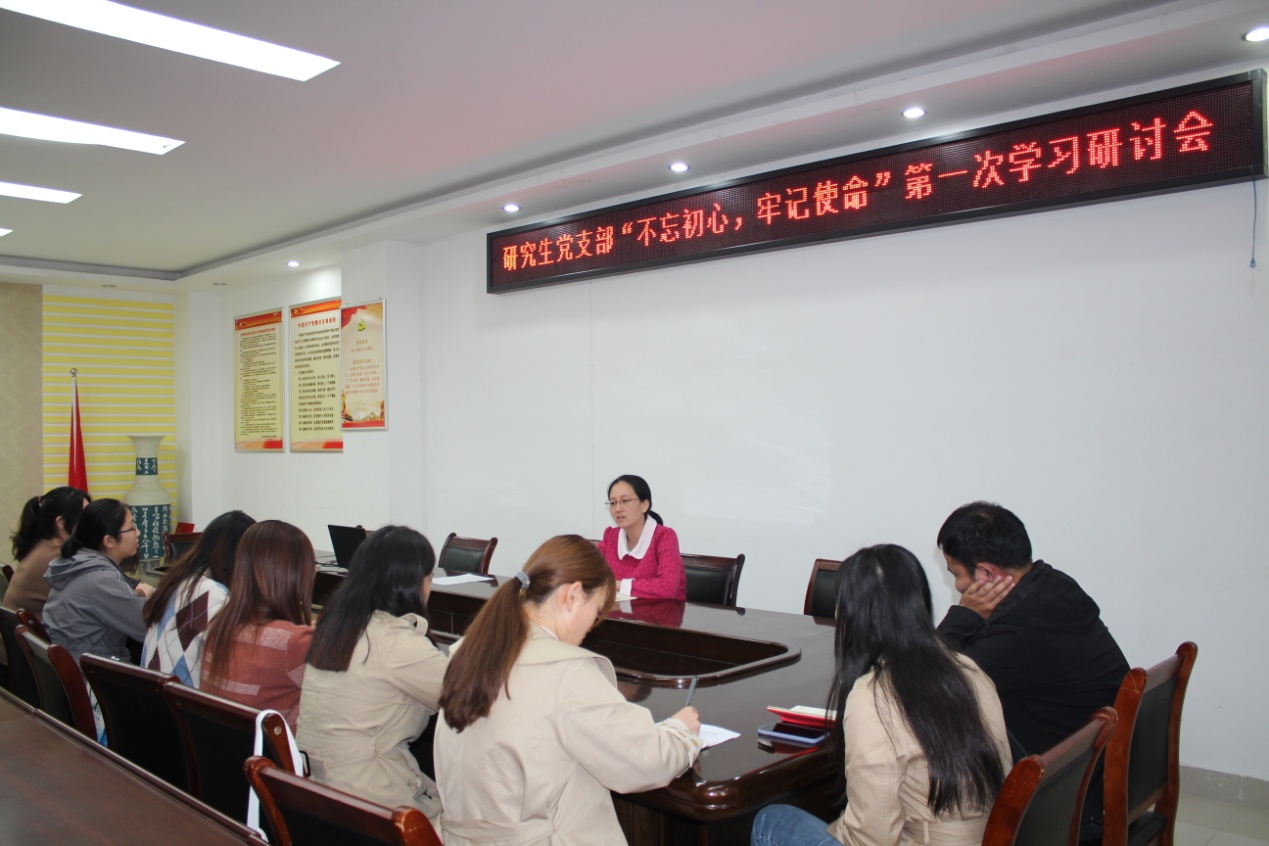 为提高党员政治觉悟,强化党员责任意识,10月29日下午,永利集团官网研究生党支部在社科楼323会议室开展了“不忘初心、牢记使命”主题教育第一次学习交流会,支部全体党员参加会议。会议由支部书记卢云晓主持。