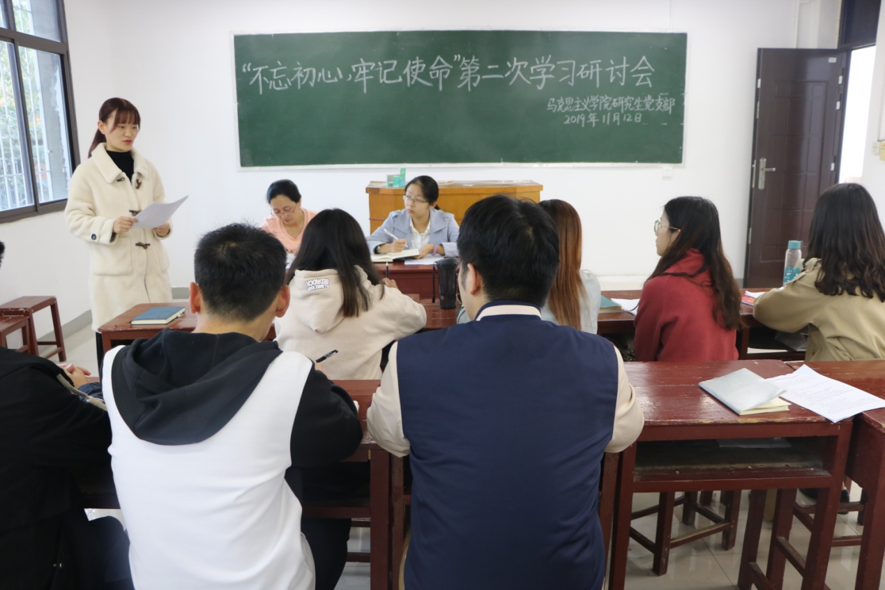 为继续强化主题教育成果,11月12日下午,永利集团官网研究生党支部在教五楼203教室开展了“不忘初心、牢记使命”第二次学习交流会,支部党员和入党积极分子参加会议。会议由支部书记卢云晓主持。