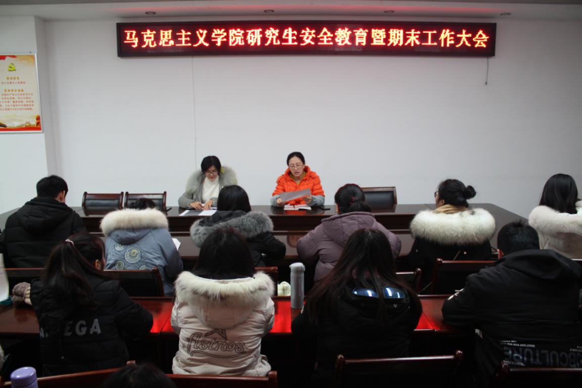 2019年12月25日,为加强研究生安全防范意识,自觉遵守校规校纪考纪,永利集团官网在323会议室召开关于安全教育以及期末工作的会议,研究生教学秘书卢云晓和班主任郑晨霞及全体研究生参加了此次会议。