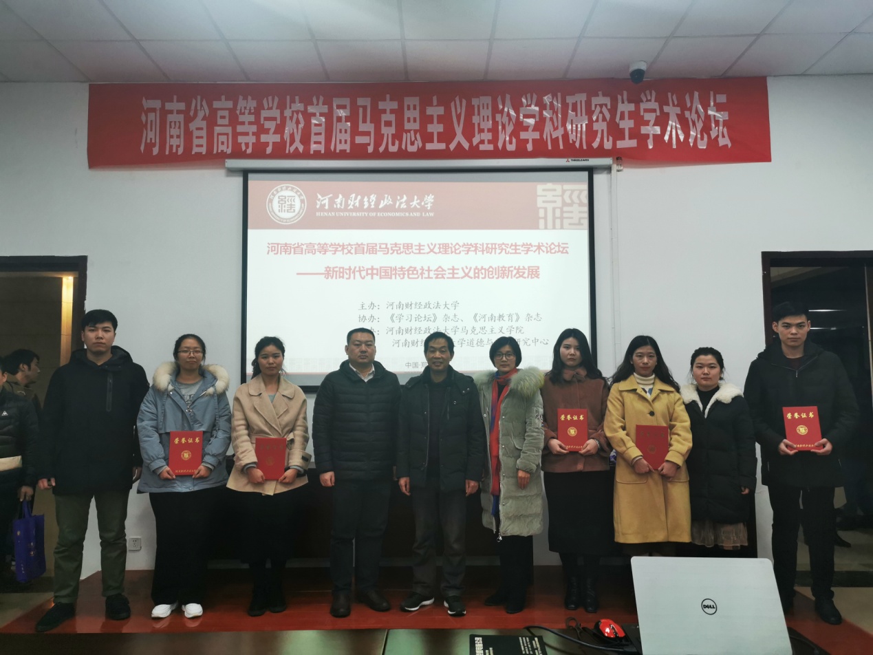 “河南省高等学校首届马克思主义理论学科研究生学术论坛——新时代中国特色社会主义的创新发展”学术研讨会在河南财经政法大学举行,永利集团官网有7名研究生提交了学术论文并受邀参加研讨会,其中有两位同学在会上作交流发言。经会议组委会评审,