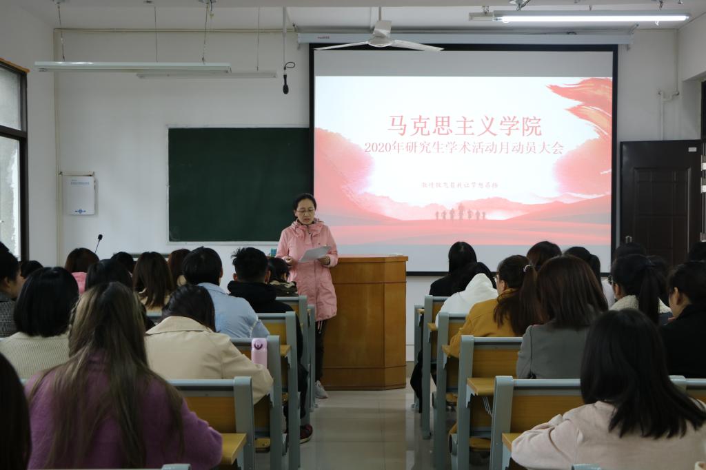 卢云晓宣读了《永利集团官网第九届研究生学术活动月活动方案》,重点向同学们介绍了参加专业学术报告会、学术论文大赛征文、教育硕士教学技能及“三字”教学基本功竞赛等方面要求,并就举办学术论坛和学术明星推荐工作做了安排部署。