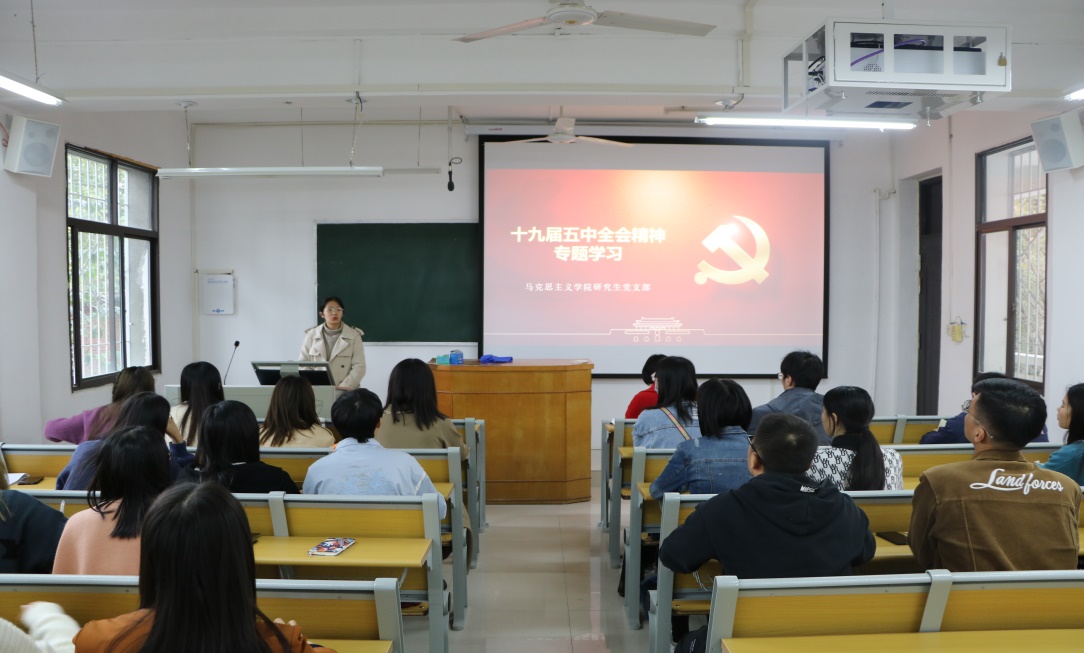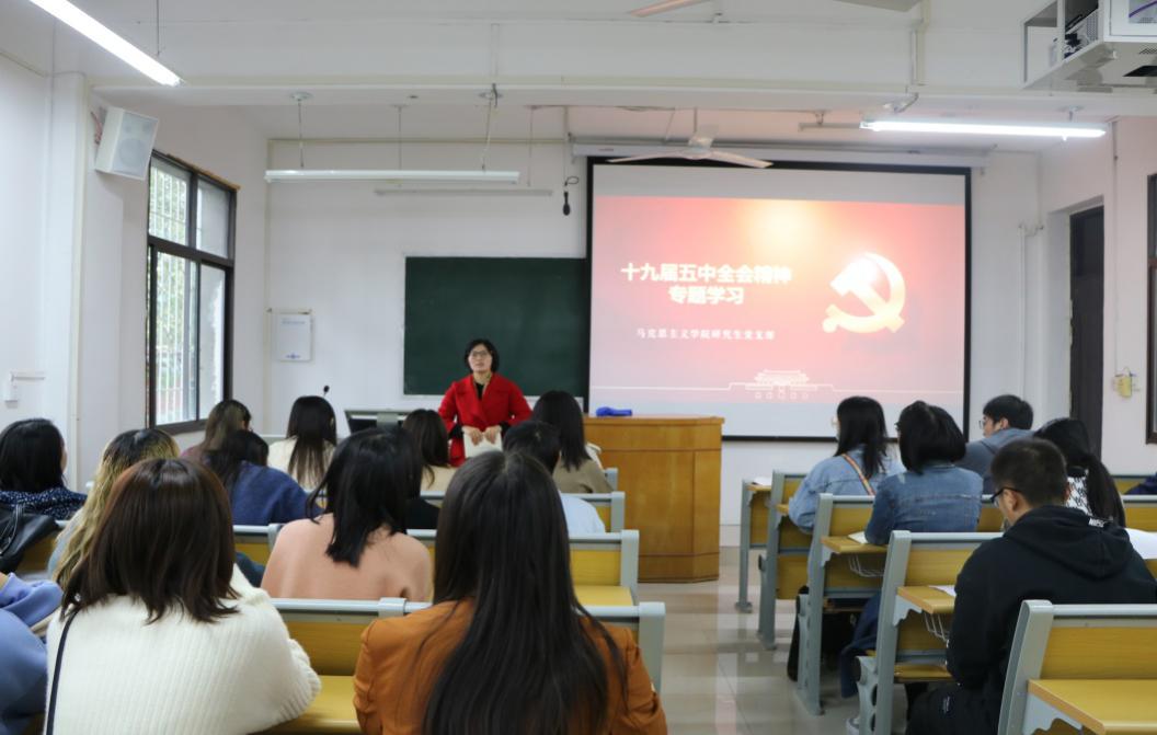 为深入贯彻落实党的十九届五中全会精神,提升党支部的政治理论学习能力,11月16日下午,永利集团官网研究生党支部于教五楼203教室举行了十九届五中全会精神专题学习活动,支部党员积极参加。