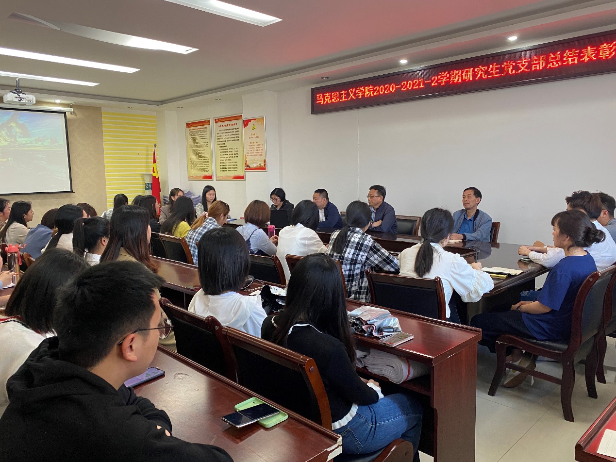 5月18日下午,永利集团官网研究生党支部2020-2021-2学期总结表彰大会在社科楼323会议室举办。唐国战书记、黄世明副院长、何晓坚副书记和全体研究生参加了此次会议,会议由支部书记郑晨霞老师主持。