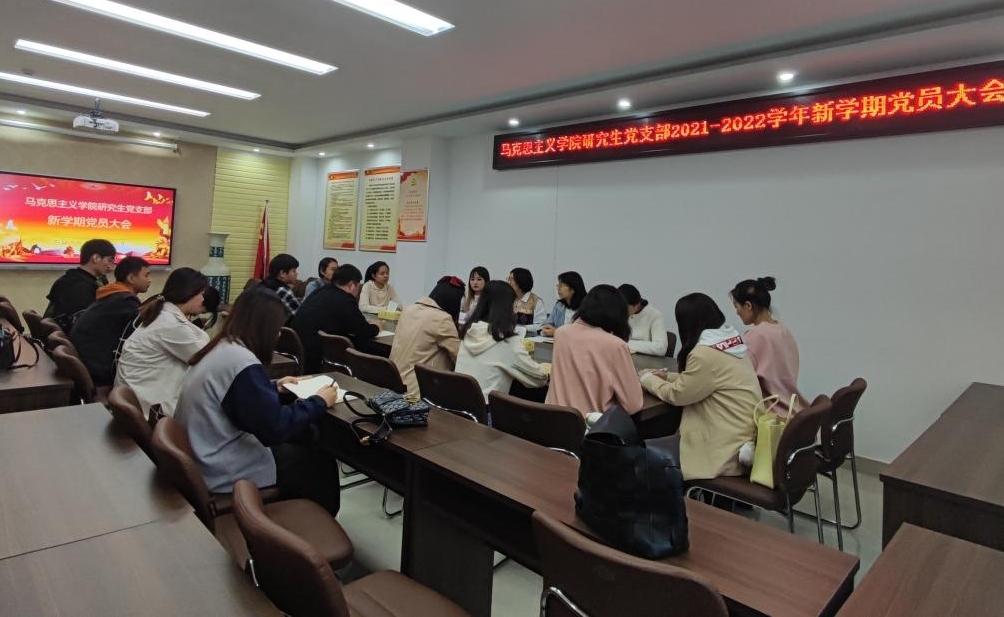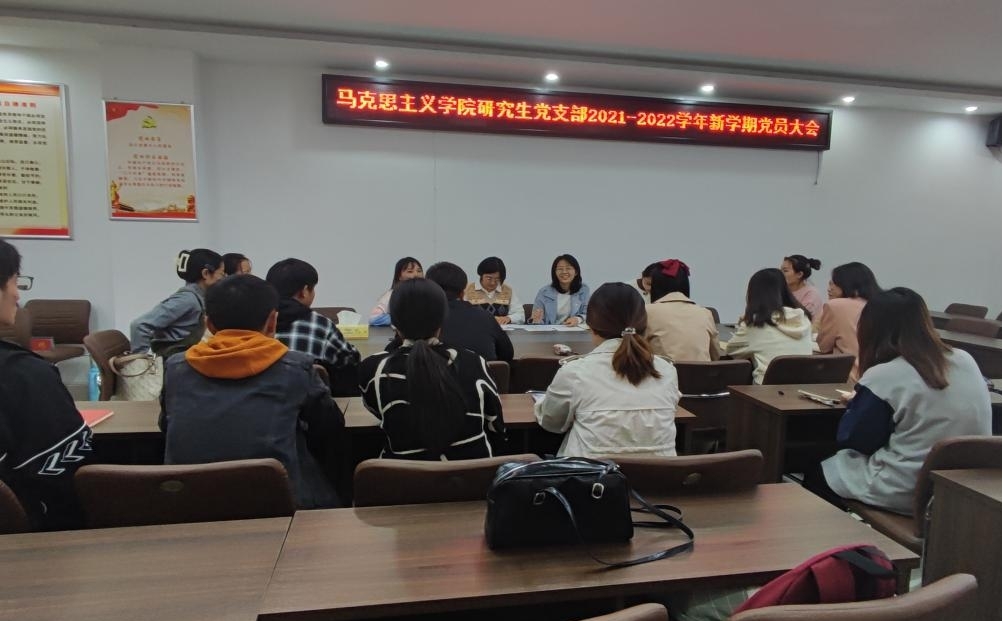 为增进新老党员之间的了解,促进研究生党支部今后的发展,永利集团官网研究生党支部于2021年10月13日下午17:20在社科楼323会议室召开新学期党员大会,会议由支部书记郑晨霞主持。