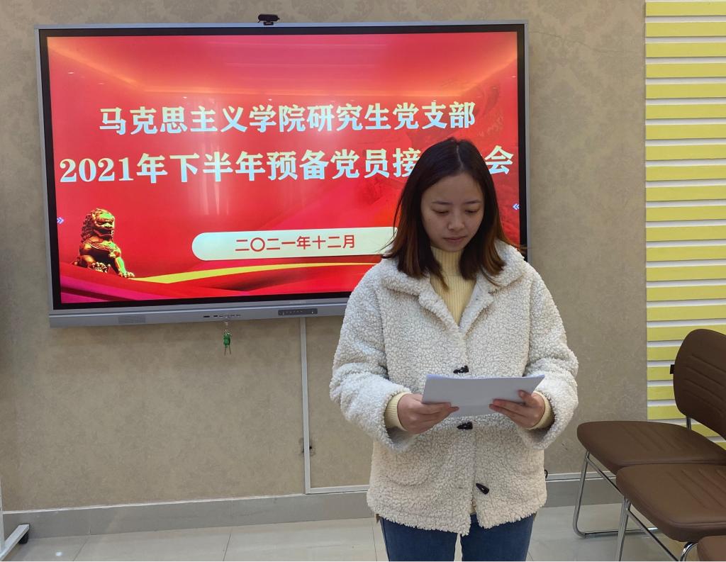 12月2日下午,永利集团官网研究生党支部于社科楼323会议室召开2021下半年预备党员接收大会,讨论了王浩、李婷婷、余海玲、张丹雅、张紫鑫、周韵诗、孟祥琳、郭倩、崔浩婷、樊悦十位同志转为中共预备党员的问题。本次会议由支部书记郑晨霞主持,监票人由宣传委员李胜担任,计票人由小组长王澳远担任。