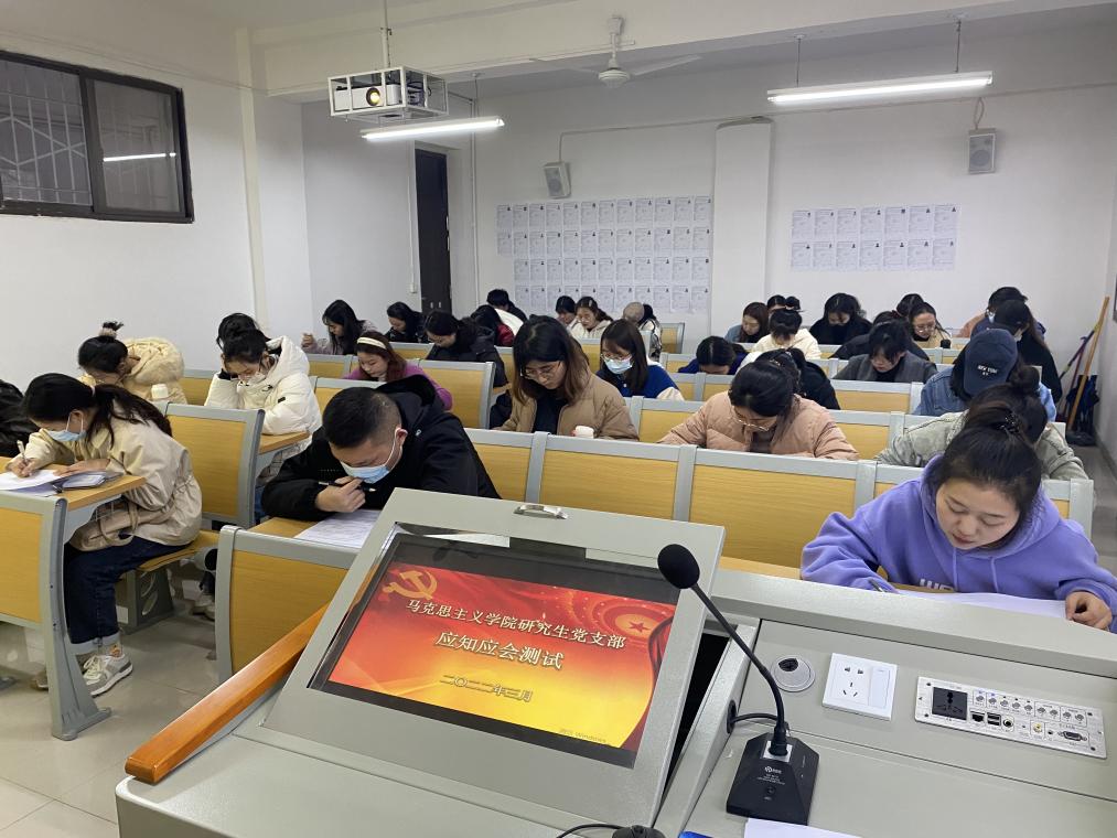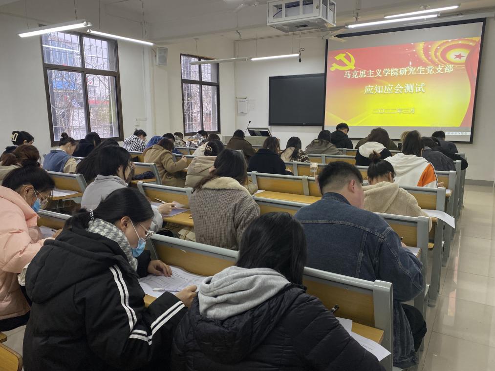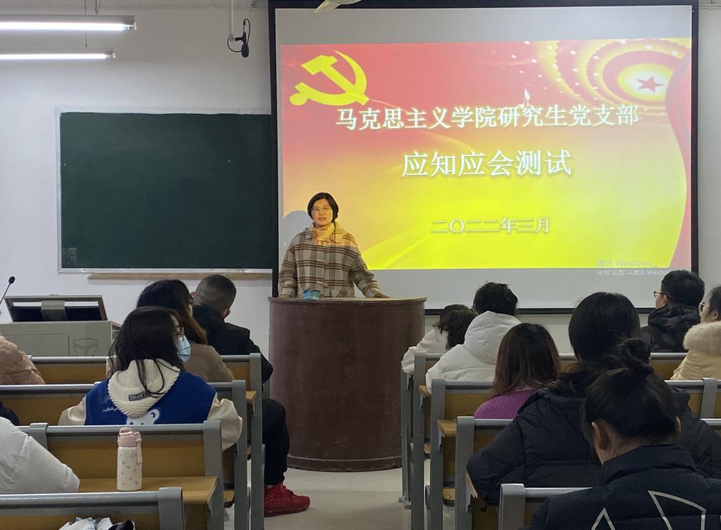 为认真学习党史学习教育成功经验,建立常态化、长效化制度机制,不断巩固党史学习教育成果,引导基层党组织和广大学生党员、预备党员、入党积极分子进一步统一思想、凝聚共识、营造深入学习贯彻习近平新时代中国特色社会主义思想的浓厚氛围,3月17日下午,永利集团官网研究生党支部组织支部党员、预备党员、入党积极分子于教学楼5楼201、203教室开展了党员应知应会知识竞赛党日活动。活动由支部书记郑晨霞主持。