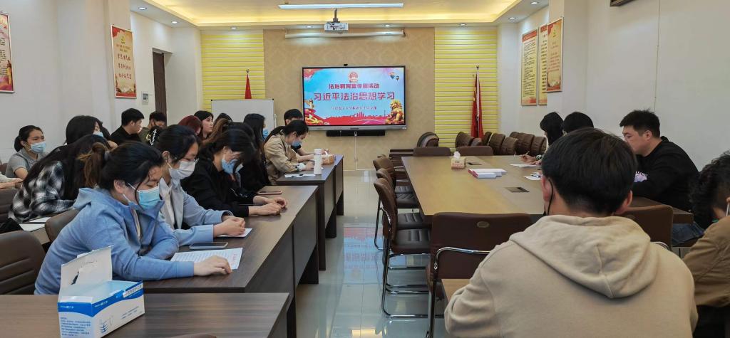 会议伊始,郑晨霞同志带领大家重温习近平总书记关于全面依法治国的系列重要论述,通过系统地了解、学习,大家一致认为习近平法治思想内涵深刻、意义重大,是顺应时代要求的重大理论创新成果。之后,与会同志一起观看法治电影《黄克功案件》,在此过程中进一步增强了法治意识。大家在认真学习习近平法治思想的基础上,结合自身实际,积极发表学习心得。汤欢同志表示,党的十八大以来,习近平法治思想领航法治中国阔步向前,在新的征程上也必将继续展现强大真理力量和磅礴实践伟力。高娟同志表示,在实现中华民族伟大复兴的关键时期,越是需要锲而不舍地推进法治体系建设,为党和国家事业提供保障。陆奕同志表示,法律的生命力在于实施,作为新时代的青年更加需要自觉做到尊法、学法、守法、用法,以实际行动为建设法治中国贡献青春力量。