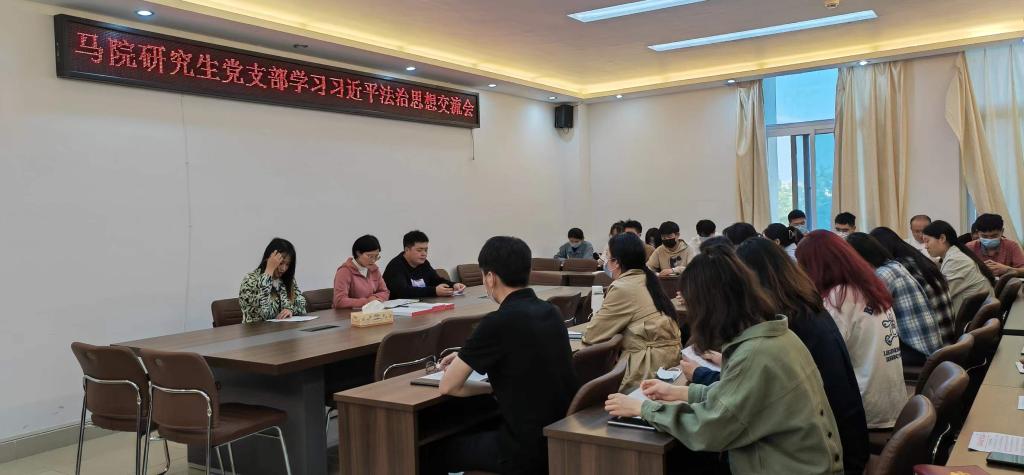 为深入学习贯彻习近平法治思想,增强永利集团官网研究生党员的政治素养和法治意识,4月21日下午,永利集团官网研究生党支部于社科楼323会议室开展集体学习交流会,永利集团官网研究生党员、预备党员、发展对象参加本次会议,会议由支部书记郑晨霞主持。