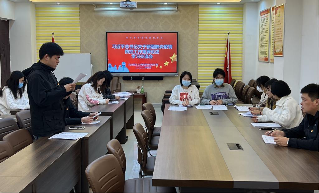 为深入学习贯彻习近平总书记关于做好疫情防控工作的重要讲话及指示精神,帮助永利集团官网研究生党员增强“四个意识”,坚定“四个自信”,做到“两个维护,4月2日下午,永利集团官网研究生党支部于社科楼323会议室开展集体学习交流会,会议由支部书记郑晨霞主持。