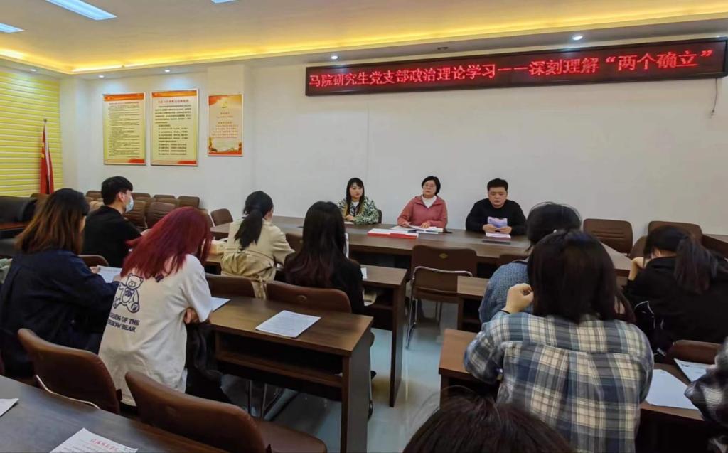 本次政治理论学习活动围绕深刻理解“两个确立”这一主题,以《中共中央关于党的百年奋斗重大成就和历史决议》为学习要点。活动伊始,郑晨霞同志简要介绍了“两个确立” 的内涵及意义,指出“两个确立”是全国各族人民的共同心愿,对推进中华民族伟大复兴的进程具有决定性意义。与会同志结合自身的学习情况,积极发表心得。王静雅同志表示,“两个确立”有助于全党统一思想、统一行动,对新时代下党和国家的事业发展起着指导作用。王仪东同志表示,在中华民族伟大复兴的关键时期,“两个确立”无疑是我国实现第二个百年奋斗目标的保障。陈云波同志表示,通过中国共产党一百年来的历史,可以看出坚强的领导核心和科学的理论指导,关乎国家前途命运、党的事业成败,“两个确立”是历史的选择、人民的选择、时代的选择,我们不仅要全面理解它的深刻内涵,更要落实到实际行动中。