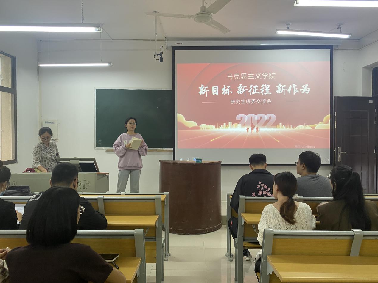 为促进班委成员间的交流学习加强班干部的责任意识服务意识群众意识提升班级工作效率920日上午教五201室召开了以“新目标新征程新作为”为主题的2022年秋季新学期研究生班委交流会会议由研究生班主任周钰婷老师主持全体研究生班委参加会议并做交流发言