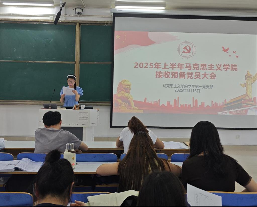 2025年5月16日上午,中共信阳师范大学永利集团官网学生第一党支部委员会在社科楼514召开了2025年上半年接收预备党员支部大会。永利集团官网学生第一党支部书记高小佳,学生第一党支部全体党员、预备党员和党员发展对象共同参加此次会议。会议由余浩洋同志主持。