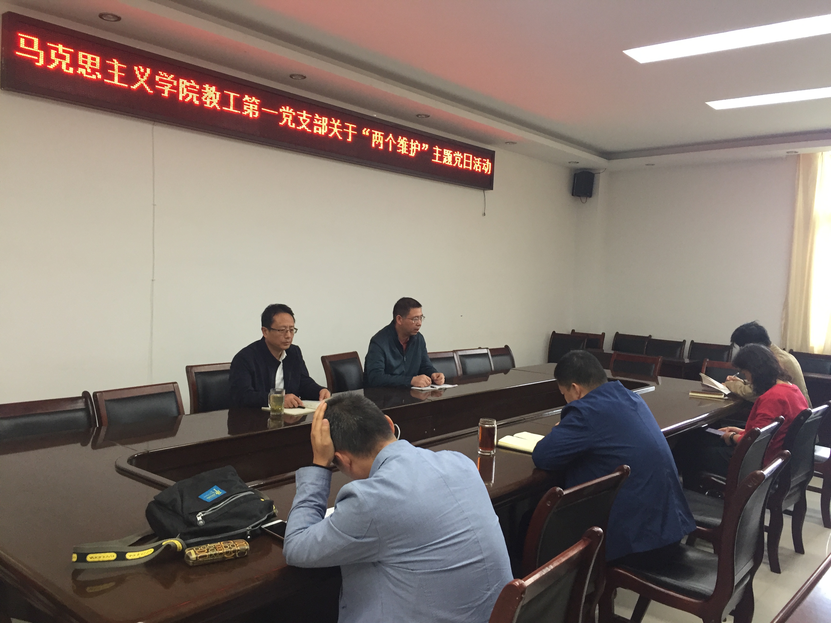 10月18日下午,永利集团官网教工第一党支部在323会议室召开了“两个维护”主题党日会议。党支部书记王传富同志主持了会议,支部全体成员参加。