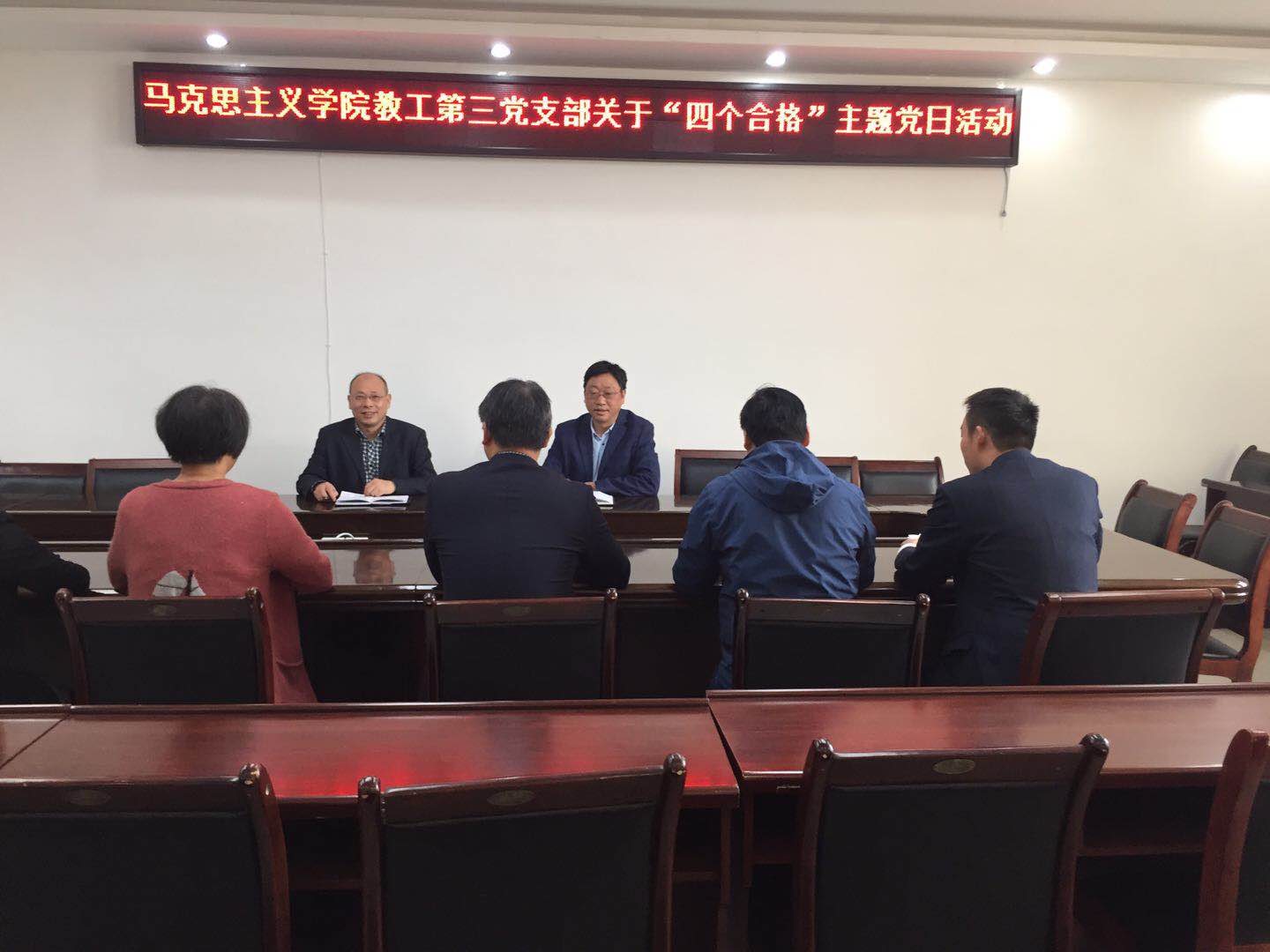 为了充分发挥教工党员的先锋模范作用,树立教工党员的良好形象,2018年10月18日上午,永利集团官网教工第三党支部在学院323会议室顺利召开“四个合格”主题党日活动。会议由支部书记厉有国同志主持。