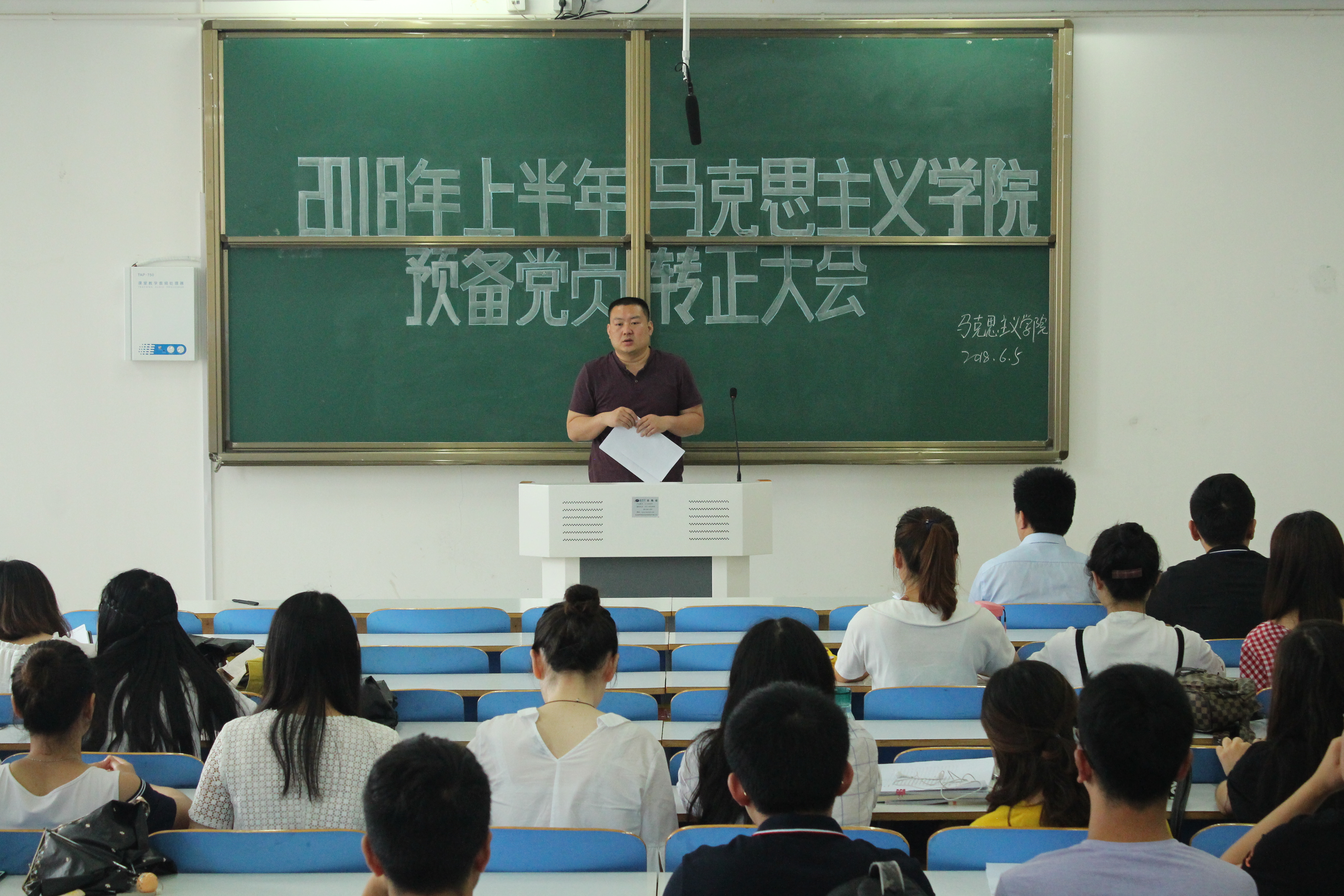 6月5日上午,永利集团官网在社科楼516教室召开了2018年上半年预备党员转正大会,大会讨论关于王佳琪等13名同志申请转为正式党员的事宜。永利集团官网党委副书记何晓坚与学生支部全体师生党员共同参加。会议由团委副书记张雅琼主持。