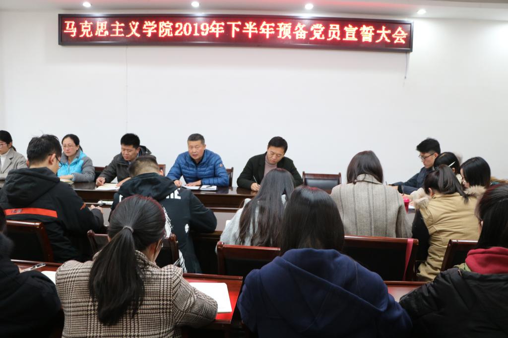 12月5日下午,永利集团官网在社科楼323会议室召开2019年下半年预备党员宣誓大会。学院党委副书记徐永新和专职组织员、学生党支部书记、全体学生党员和师生预备党员共同参加。大会由团委副书记肖妍杰主持。