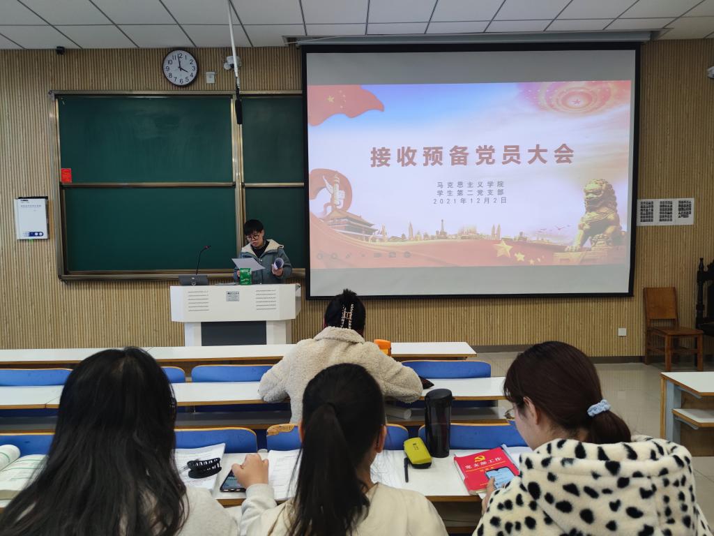 12月2日下午,永利集团官网学生第二党支部在社科楼515教室组织召开了2021年下半年接收预备党员支部大会。永利集团官网学生第二党支部书记曹梦真,学生第二党支部全体正式党员、预备党员和党员发展对象共同参加本次会议。会议由王文慧主持。