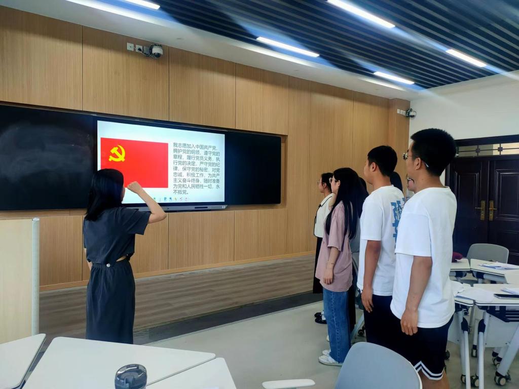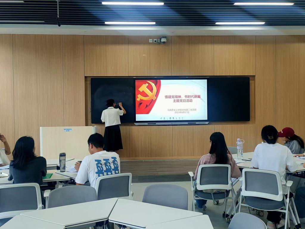 活动伊始,党支部书记任婷带领支部全体党员重温入党誓词。随后,全体党员共同观看了建党主题纪录片《重生》和《习近平治国方略——大国治理》,进一步增进了对中国共产党诞生、执政和建设的深刻认识。接着,杨璐同志、张素冰同志分别结合自身学习生活实际情况作出分享。杨璐表示,新时代赋予了青年学生更多的平台和机遇,也对我们提出了更高的要求。作为新时代大学生党员,我们要砥砺奋斗意志,拒绝“佛系”和“躺平”,为祖国建设添砖加瓦。张素冰就学习新发展理念作出分享。她表示,新发展理念具有十分重要的理论价值和实践意义,对于加强生态文明建设、实现乡村振兴“强富美”具有重要的支撑作用。最后,党支部书记任婷对本次活动作出总结。她希望各位党员进一步学习习近平新时代中国特色社会主义思想,用党的理论知识武装头脑、指导实践,在青春的赛道上奋力奔跑,努力跑出当代青年的最好成绩。