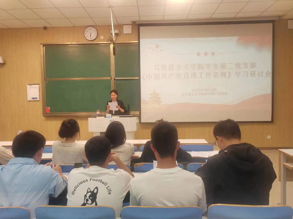 为贯彻落实2024年2月新修订的《中国共产党巡视工作条例》,推动全面从严治党向纵深发展。4月15日晚上,永利集团官网学生第二党支部在社科楼515教室召开《中国共产党巡视工作条例》学习研讨会。学生第二党支部书记任婷、支部全体正式党员、预备党员共同参与会议。会议由任婷同志主持。