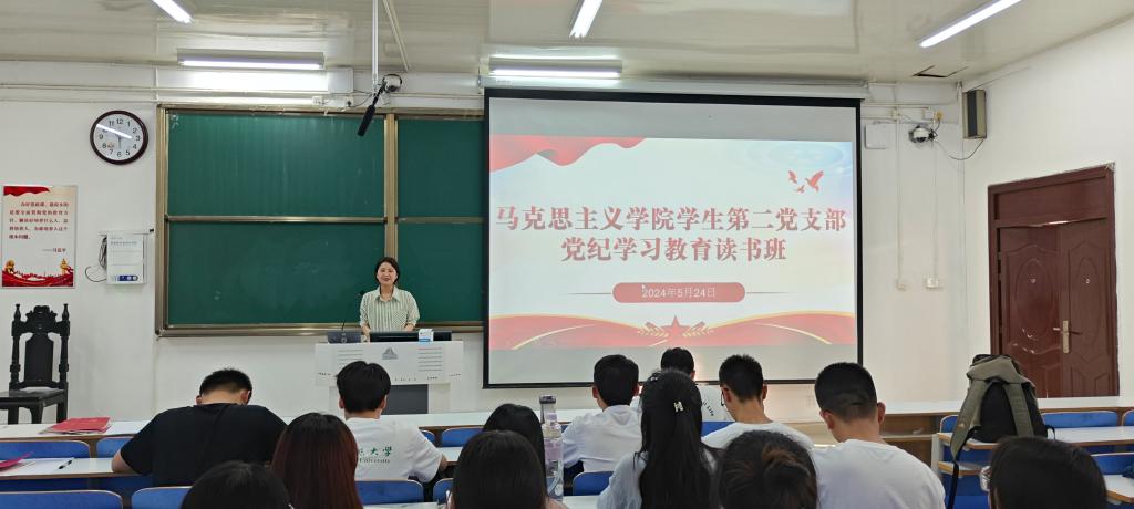 为贯彻落实习近平总书记关于党纪学习教育的重要论述,在学校党委党纪学习教育总体部署和学院安排下,永利集团官网学生第二党支部于5月24日下午在社科楼514教室开展党纪学习教育读书班活动。学生第二党支部书记任婷、支部全体正式党员、预备党员共同参与活动。活动由任婷同志主持。