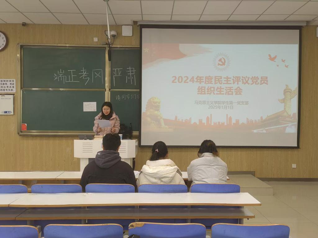 1月1日上午,永利集团官网学生第一党支部在社科楼515教室召开2024年度民主评议暨组织生活会。永利集团官网学生第一党支部全体正式党员、预备党员同志共同参与。会议采用线上线下相结合的方式进行,由余浩洋同志主持。
