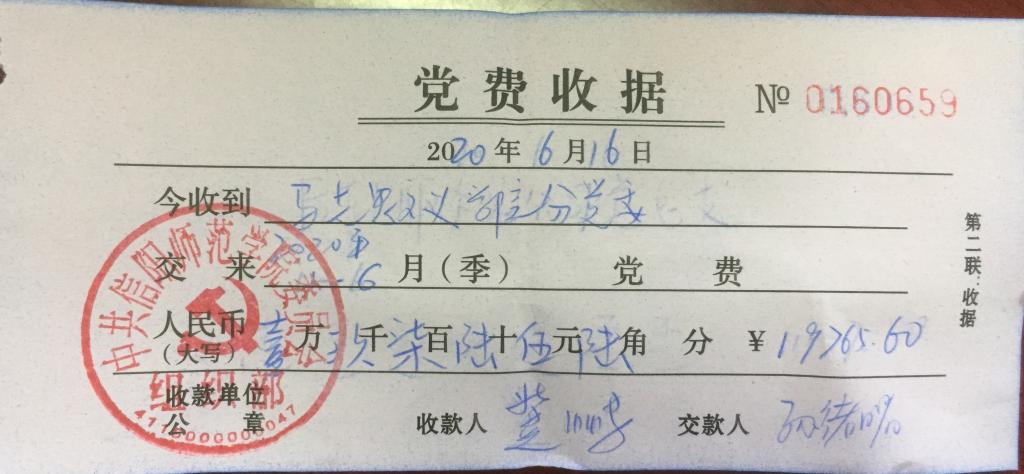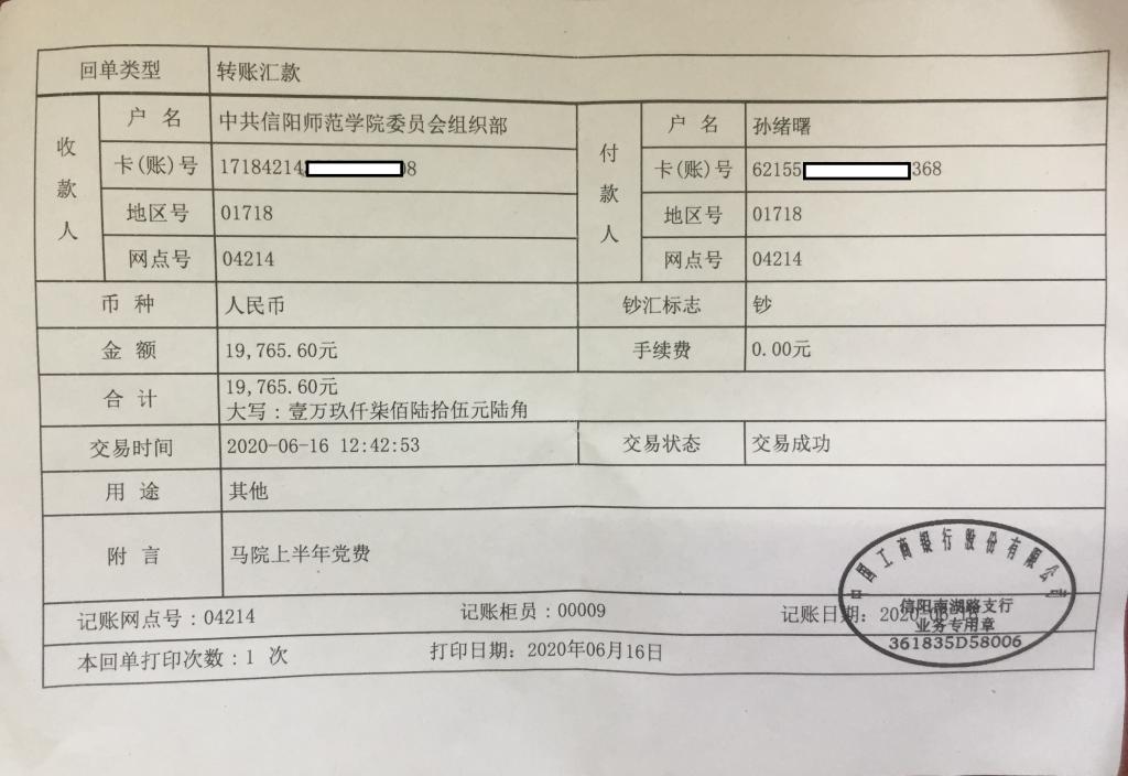 永利集团官网2020年1-6月学院师生党员缴纳党费转账单及收据