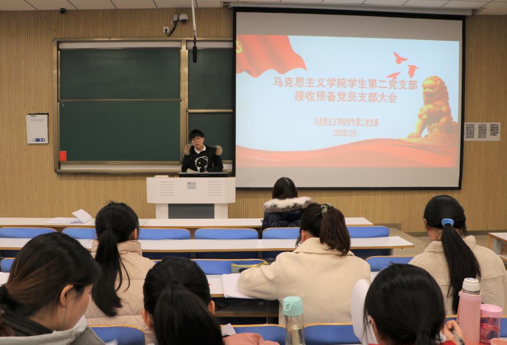 12月2日下午,永利集团官网在社科楼515教室召开学生第二党支部接收预备党员支部大会。永利集团官网学生第二党支部支部书记曹栋,支部正式党员陶青青、曹梦真,学生第二党支部预备党员和党员发展对象共同参加本次会议。会议由曹栋主持。