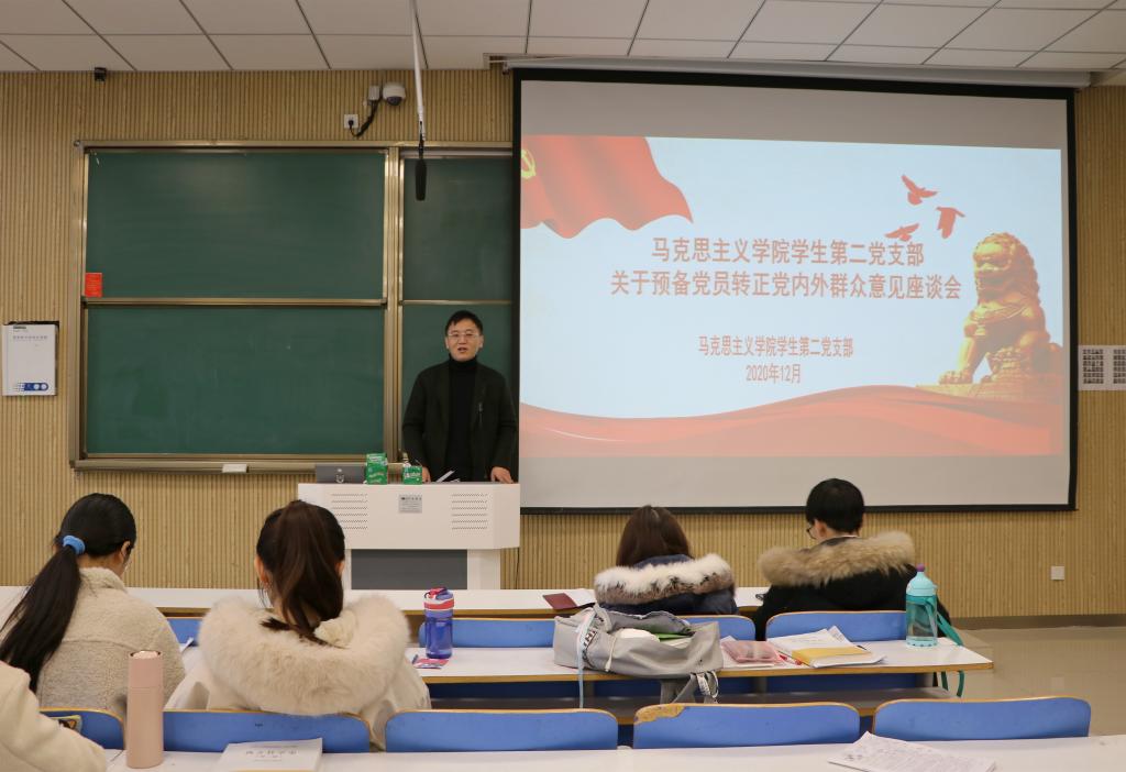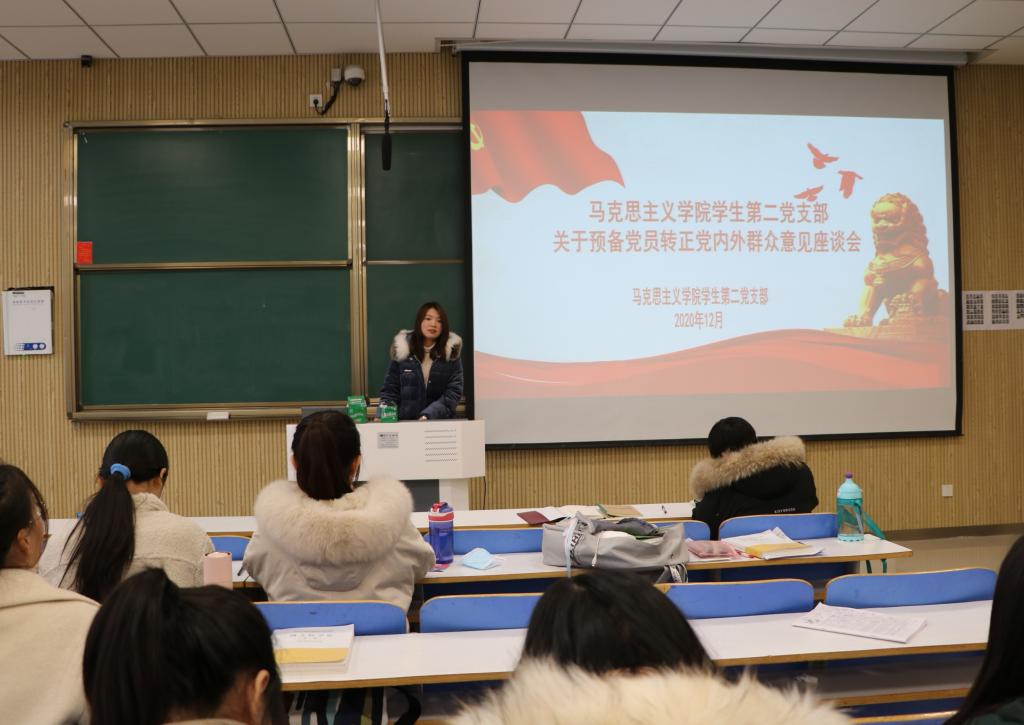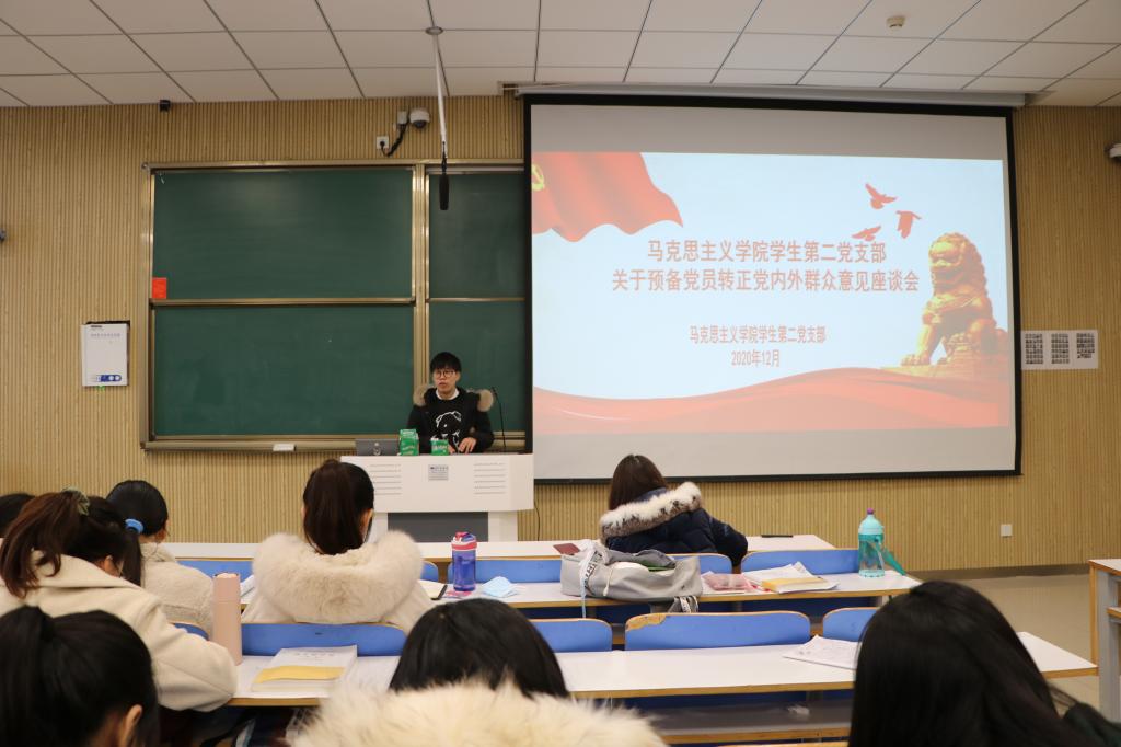 12月2日上午,永利集团官网学生第二党支部预备党员转正党内外群众意见座谈会在社科楼515教室顺利召开。永利集团官网学生第二党支部书记曹栋,支部正式党员陶青青、曹梦真,第二党支部预备党员以及党外群众共同参加此次会议。会议由曹栋主持。