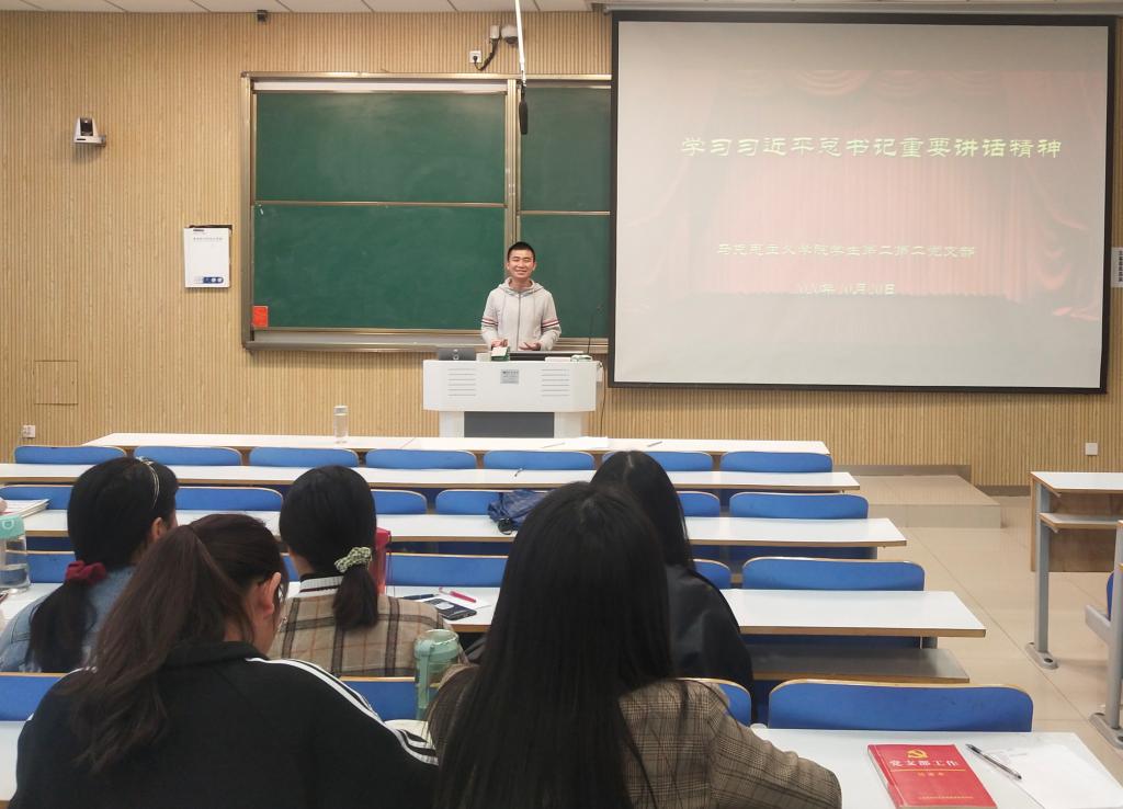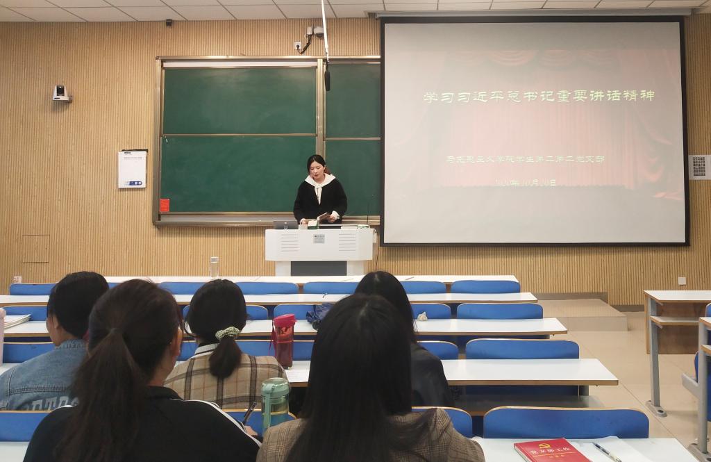 10月20日下午,永利集团官网学生第二党支部在社科楼515教室顺利开展“学习习近平总书记重要讲话精神”主题党日活动。学生第二党支部全体成员共同参加了此次会议。会议由艾子元主持。