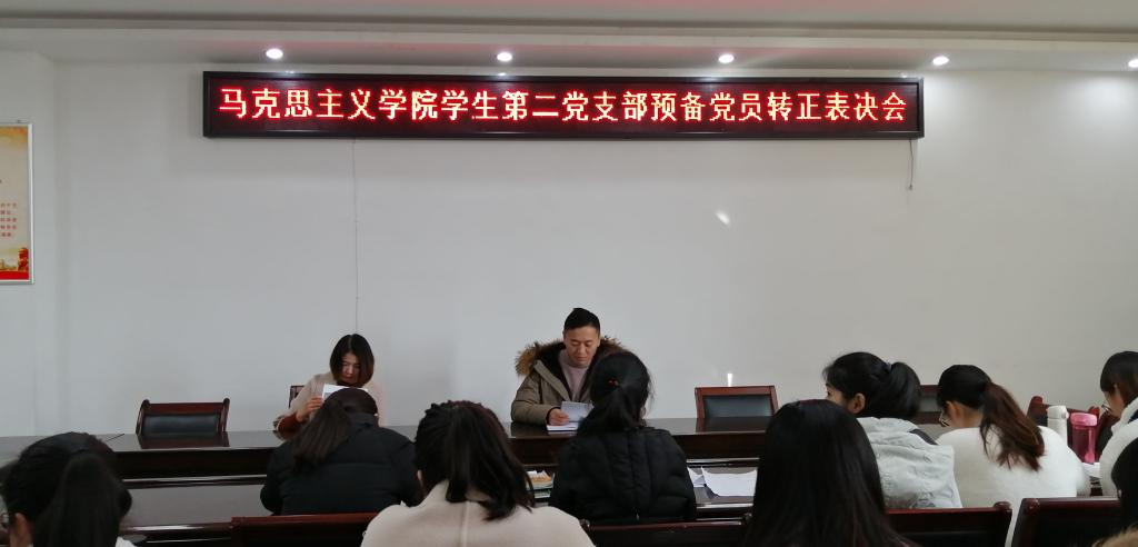 12月10号,永利集团官网学生第二党支部在社科楼323会议室召开了2019年下半年党员转正表决会,大会讨论关于刘冰等4名预备党员申请转为正式党员的事宜。学生第二党支部支部书记曹栋,全体党员共同参加。会议由曹栋主持。