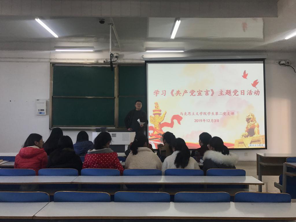 学习马克思主义基本理论是共产党人的必修课,为加强对马克思主义经典著作的学习研究,12月3日下午,永利集团官网学生第二党支部在社科楼514教室开展学习《共产党宣言》主题党日活动。学生第二党支部组织委员杨胜利、全体预备党员参加活动。活动由杨胜利主持。