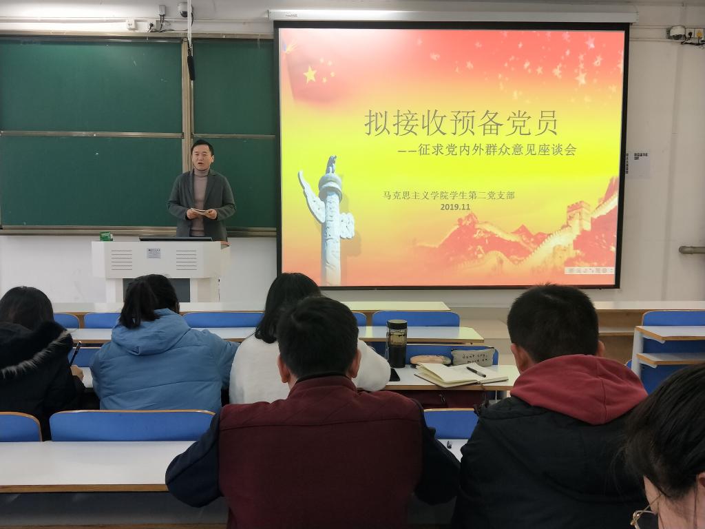 11月25日,永利集团官网学生第二党支部在社科楼516教室召开征求党内外群众意见座谈会。学生第二党支部预备党员、发展对象和部分群众参加了此次会议。本次会议由支部书记曹栋主持。