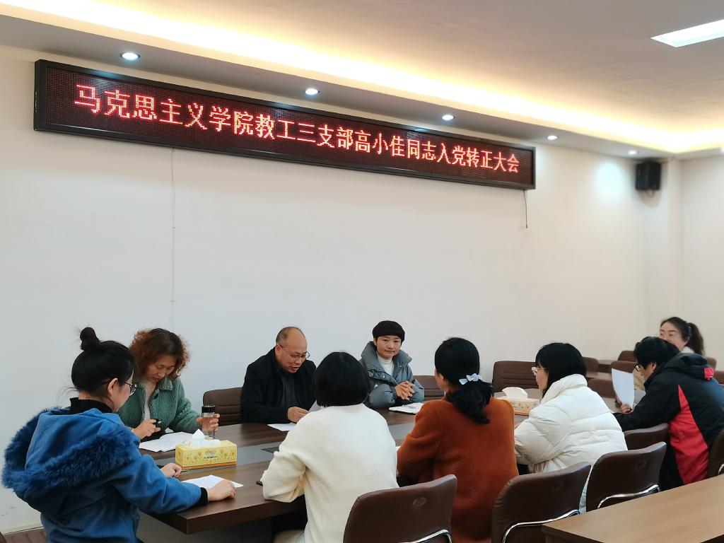 9月22日下午,永利集团官网教工三支部在社科楼323会议室召开入党转正大会。会议由教工三支部党支部书记厉有国主持。