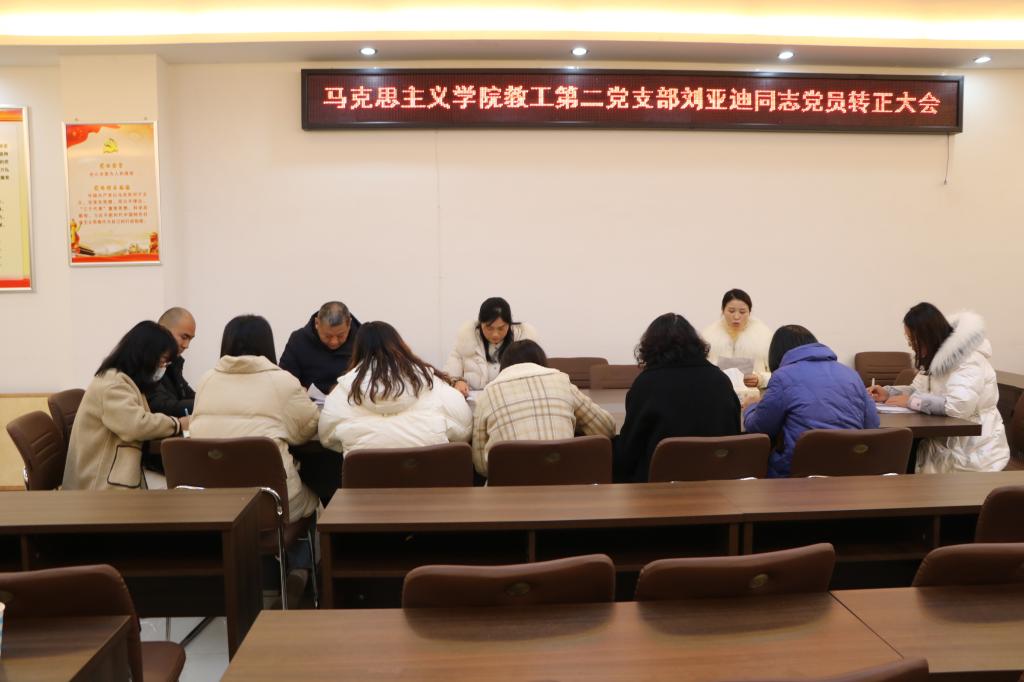 12月15日下午,永利集团官网教工第二党支部在社科楼323会议室召开入党转正大会。教工第二党支部支部书记胡春湘、正式党员王帆宇、徐化影、张朝霞、陈雷、曾帝、胡春湘、黄世明、叶长红、王建礼,预备党员刘亚迪共同参加本次会议。会议由胡春湘主持。