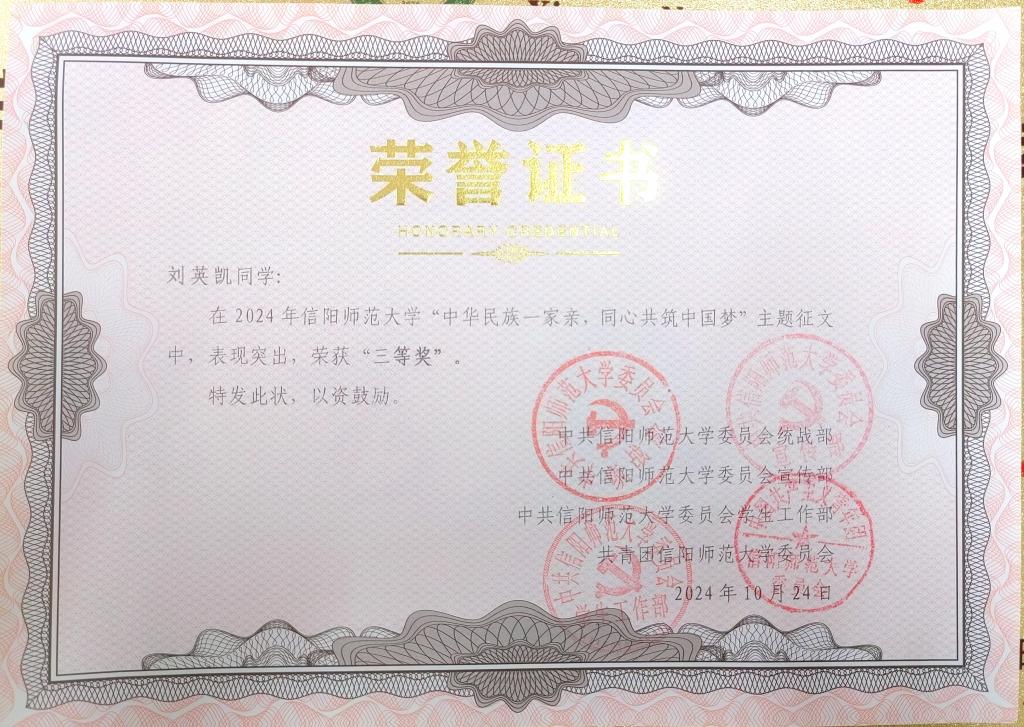 永利集团官网学子曹珍珍荣获我校第二届大学