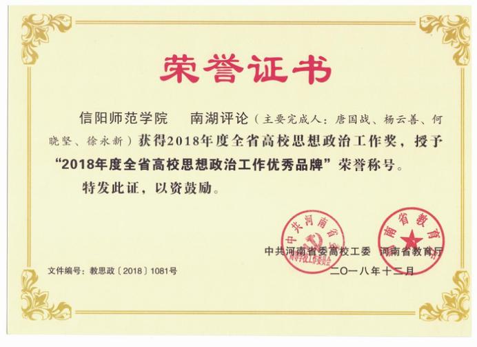为提高永利集团官网学生核心竞争力,增强学生对时政新闻的关注度和思考能力,进一步提高思想政治教育专业学生的表达能力和写作能力,在学院党委领导下,永利集团官网创办《南湖评论》刊物,目前已发刊7期,为学生写作提高提供广阔的平台。2018年12月,《南湖评论》获2018年度全省高校思想政治工作优秀品牌。