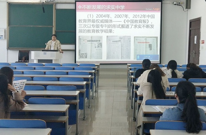 宣讲会上,胡文楠首先通过播放学校VCR,整体介绍了求实中学的基本情况。随后,她结合PPT详细介绍了该校的发展历程、教学环境、薪资待遇及招聘岗位等内容。她指出,求实中学拥有优秀的硬件设备和大量的优质生源,重视为师生营造良好的学习、生活、工作环境,关注教师专业素质的提升和培养,希望同学们踊跃参与招聘。最后,胡文楠与学生进行面对面交流,对在场同学提出的相关问题进行详细解答。不少同学表示会认真考虑,并积极准备参与该用人单位明日在我校春季双选会的招聘。
