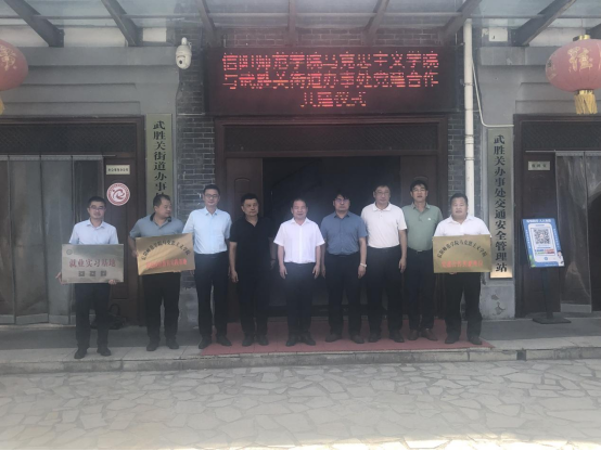 双方相关负责人在党建合作、学生就业服务、科学研究、成果转化、实习实训基地共建等方面进一步交流,达成相关合作意向,并向武胜关街道办事处授予信阳师范学院永利集团官网党建合作共建单位、思想政治教育实践基地、信阳师范学院“就业实习基地”牌匾。