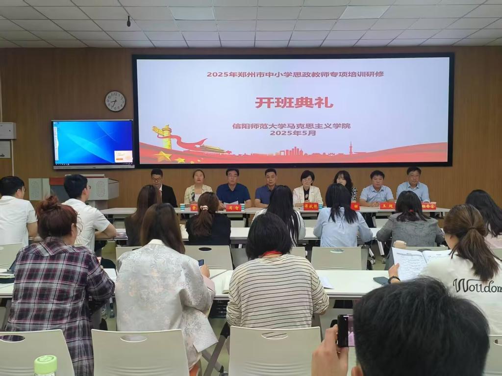 为进一步强化思政课教师队伍建设,提升思政课教学质量与育人成效,5月13日上午,2025年郑州市中小学思政课教师专题培训开班典礼在社科楼120教室举行。郑州市教育局教师教育处副处长谭斌艳、科员田甜,郑州市第二十四中学主任华国宝,永利集团官网党委副书记王超,副院长周智、程晋富、訾其伦出席典礼,全体班主任、班级助理共同参与。典礼由永利集团官网副院长訾其伦主持。