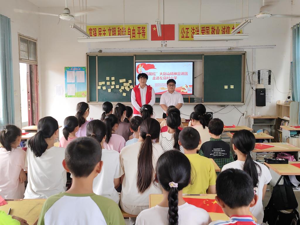 为传承红色基因,助力乡村教育,6月6日下午,“信阳红”大别山精神宣讲团走进信阳市左店村小学,开展了一场以“大别山魂承薪火,左店童声颂英魂”为主题的红色教育活动,为乡村学子带来了一堂生动的红色思政课,助力红色基因在基层校园扎根。