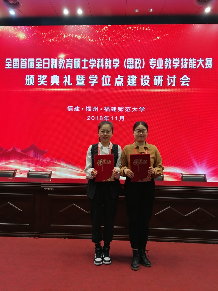 11月21日—23日,由全国教育专业学位研究生教育指导委员会主办的全国首届全日制教育硕士学科教学(思政)专业教学技能大赛(决赛)在福建师范大学举行。经过激烈的角逐,永利集团官网2017级学科教学(思政)专业研究生张梦瑶和罗尚泽两位同学双双荣获三等奖。