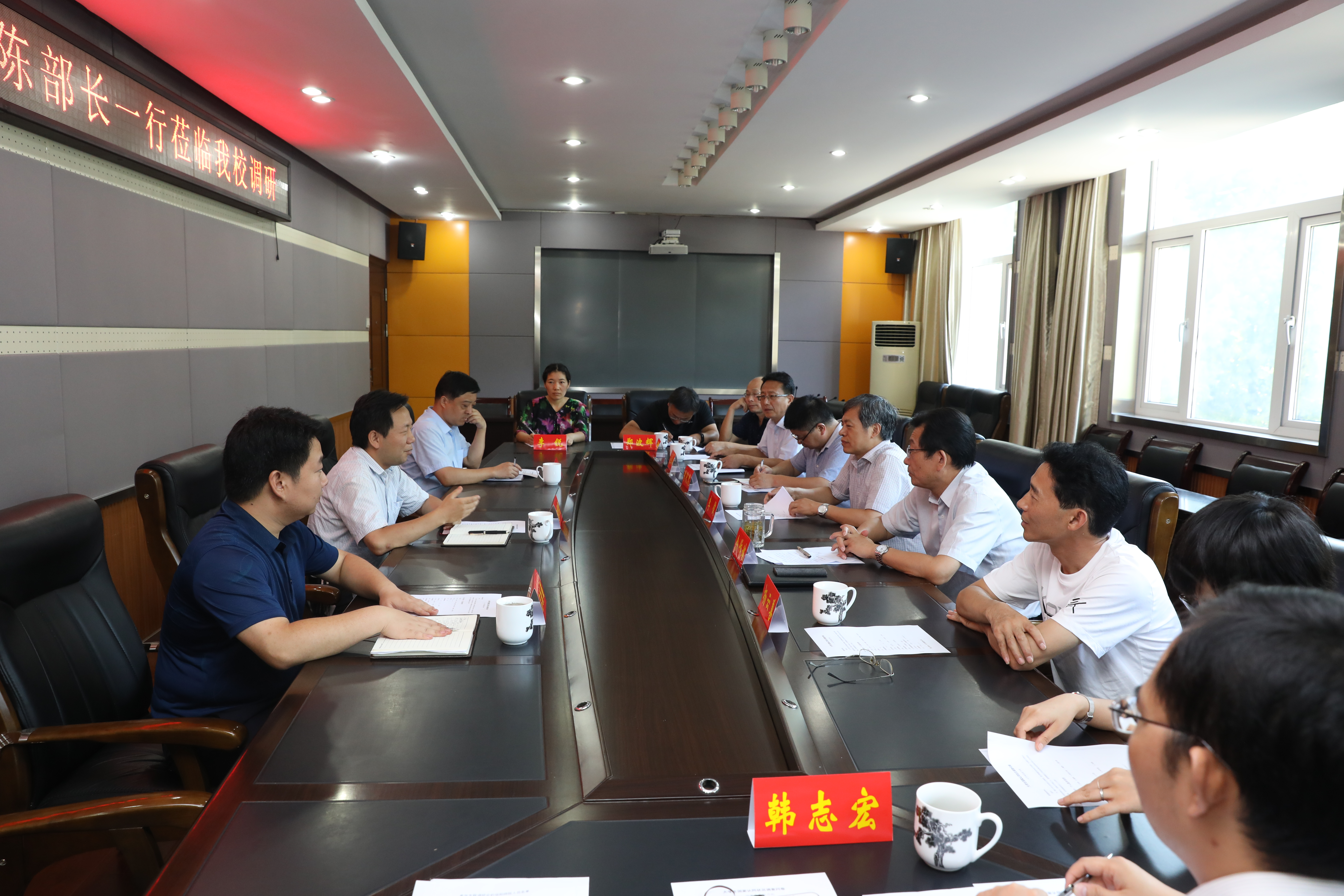 7月19日上午,省委统战部副巡视员陈照顺、宣传办主任罗长城、政研室干部吕跃鲲一行来我校调研统战理论研究工作,座谈会在学校第五会议室举行。校长李俊、校党委副书记余作斌出席,校党委统战部部长曾伏虎、永利集团官网院长杨云善、永利集团官网党委书记唐国战以及河南省统一战线理论研究信阳师范学院基地的主要成员参加了座谈会。