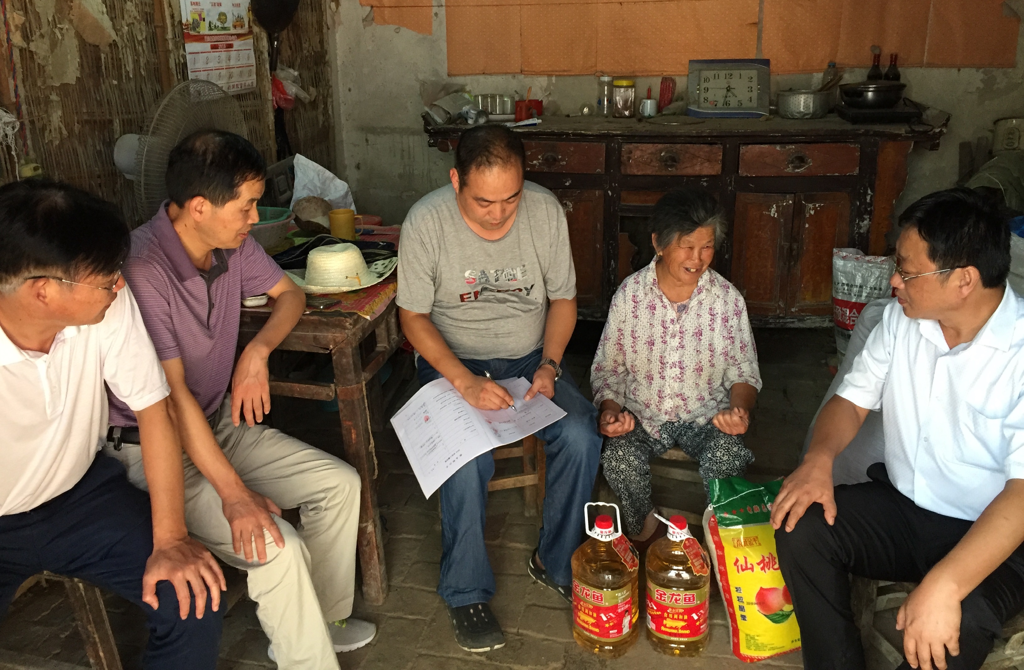 为进一步做好社会服务工作,推进落实精准扶贫任务,8月24日,永利集团官网副院长周智、黄世明、程晋富及办公室主任郑波辉一行赴潢川县谈店乡万营村,在驻村第一书记李刚的带领下,前往永利集团官网结对帮扶对象邓秀英老人家开展走访慰问活动。