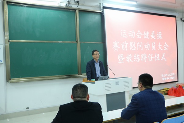 为鼓励大家积极参加训练,调节参赛人员的心理状态,4月12日下午,永利集团官网在社科楼516教室举行了运动会健美操赛前慰问大会暨教练聘任仪式。永利集团官网党委书记唐国战,党委副书记徐永新、何晓坚,副院长程晋富,党委秘书孙绪曙,团委书记曹栋,团委老师曹菁菁与永利集团官网学生会部分成员一同慰问运动员和健美操训练人员。仪式由分团委副书记张雅琼主持。