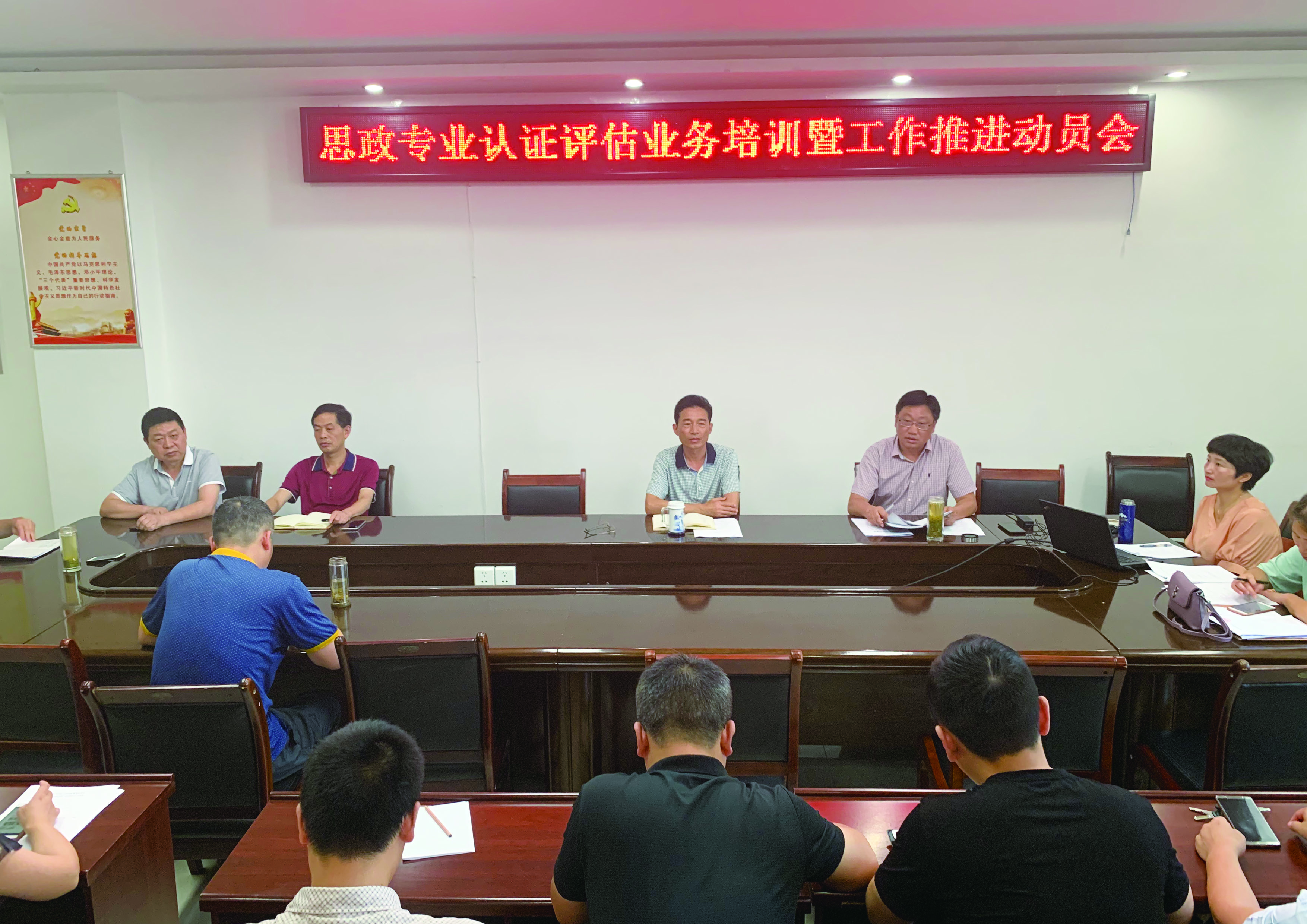 今年暑期是我校第二批师范专业认证正式启动申请阶段工作任务的关键时期,永利集团官网思想政治教育专业是此次申请认证的专业之一。为落实我校关于师范类专业认证工作的部署要求,扎实推进永利集团官网思政专业认证工作,7月20日下午,永利集团官网在社科楼323会议室召开了思政专业认证评估业务培训暨工作推进动员会。学院党政领导班子和全体教师参加了此次会议。会议由院长杨云善主持。